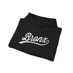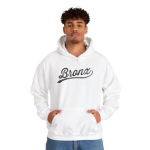 This cozy hoodie wears like a warm neighborhood memory. The soft, medium-heavy fabric wraps you in gentle warmth while the vintage-style “Bronx” script sits proudly on the chest—faded ink details that read like a lived-in favorite. Slip hands into the roomy kangaroo pocket, pull the double-lined hood up with its color-matched drawcord, and feel instantly grounded. It’s the kind of hoodie people reach for for late-night walks, weekend coffee runs, or just to relax at home. Subtle, familiar, and durable—the build and finishes (tear-away neck label, reinforced cuffs, and clean tubular knit) keep it comfortable and long-lasting.
