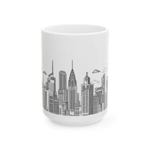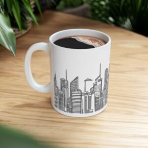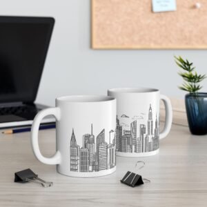 Be the first to review “City Scape Script White Ceramic Mug — Vintage Script Coffee Cup (11oz, 15oz)”