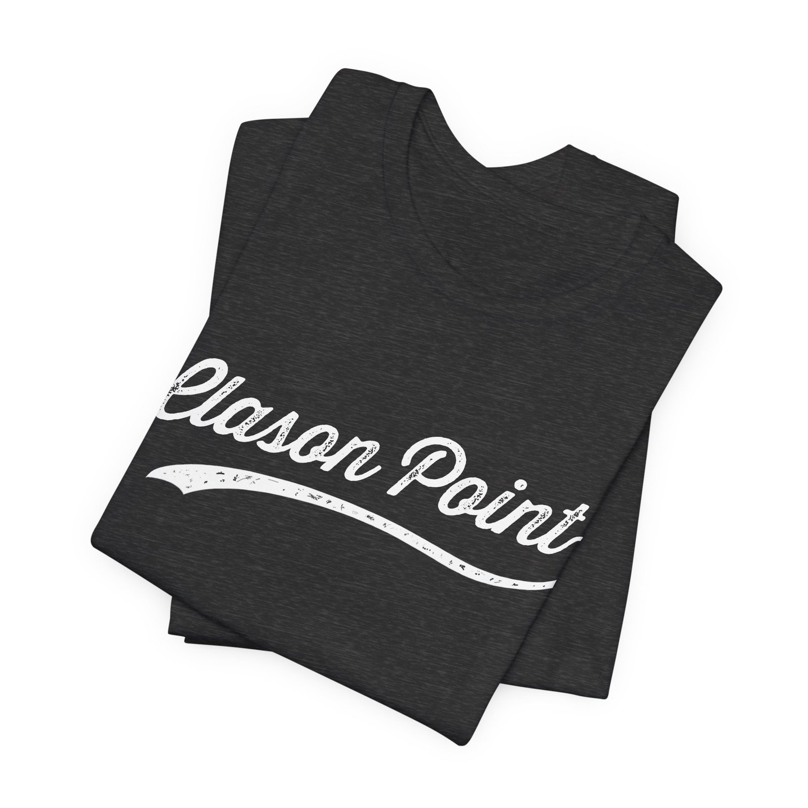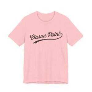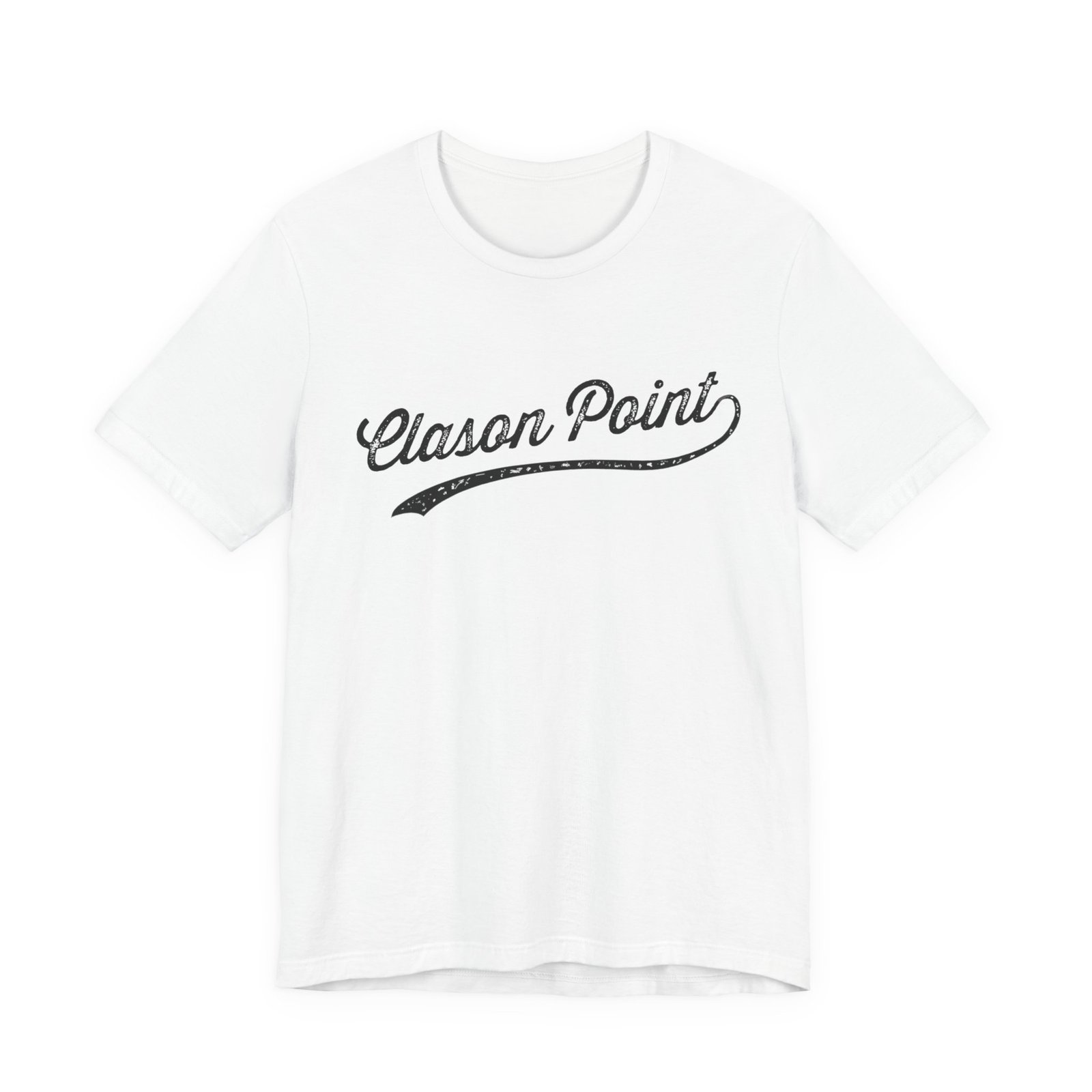 The image showcases the text “Clason Point” in a stylized, vintage script font with a distressed, weathered texture. The typography features elegant, flowing cursive lettering with a sweeping underline that extends beneath the words. The design has an aged, worn appearance that suggests a nostalgic or retro aesthetic, reminiscent of classic signage or branding from past decades. The text stands out prominently against the background, creating a bold and eye-catching visual. The weathered texture adds depth and character to the typography, giving it an authentic, lived-in feel.