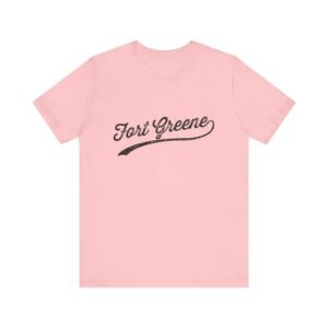 This image showcases a stylized text logo featuring the words “Fort Greene.” The design employs a vintage-inspired, cursive font that adds a classic and nostalgic feel. The text is slightly slanted downward, giving it a dynamic and fluid appearance. A distinctive underline extends from the text, enhancing the retro aesthetic and adding visual interest. The overall style is reminiscent of mid-20th-century signage and branding.