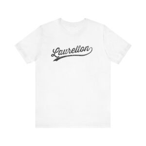 The image features the word “Laurelton” in a vintage, distressed script typography style. The text appears to have a weathered, slightly textured effect that gives it an aged and nostalgic aesthetic. The lettering is designed with elegant, flowing cursive characters that have sweeping underline flourishes. The typeface looks like a classic sports jersey or retro branding style, with a slightly worn and stamped appearance. The design suggests a classic, timeless branding approach reminiscent of mid-20th century graphic design techniques.